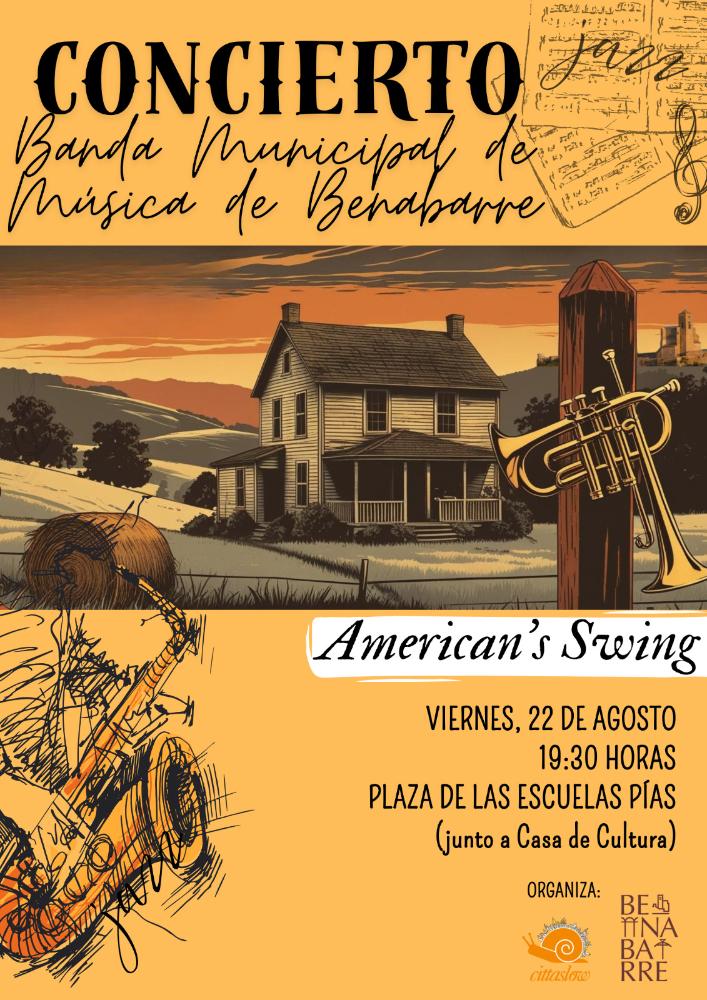 Concierto de la Banda de Música de Benabarre en la Plaza de la Palmera, junto a la Biblioteca. Repertorio American's Swing. Actividad gratuita.