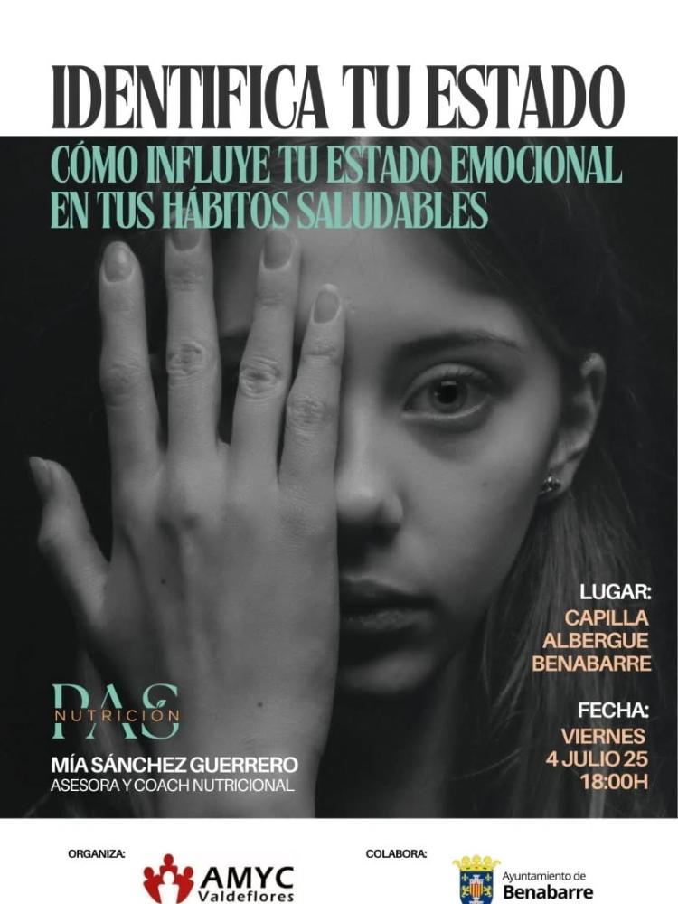 Charla sobre nutrición a cargo de Mia Sanchez: Cómo influye tu estado emocional en tus hábitos saludables. A las 6 de la tarde en la Capilla del Albergue de Benabarre,