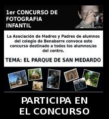 La Asociación de Madres y Padres de alumnos del colegio de Benabarre convoca el 1º CONCURSO DE FOTOGRAFIA, destinado a los niños y niñas de la escuela y regido por las bases que se pueden consultar en este enlace: BASES PARA PARTICIPAR